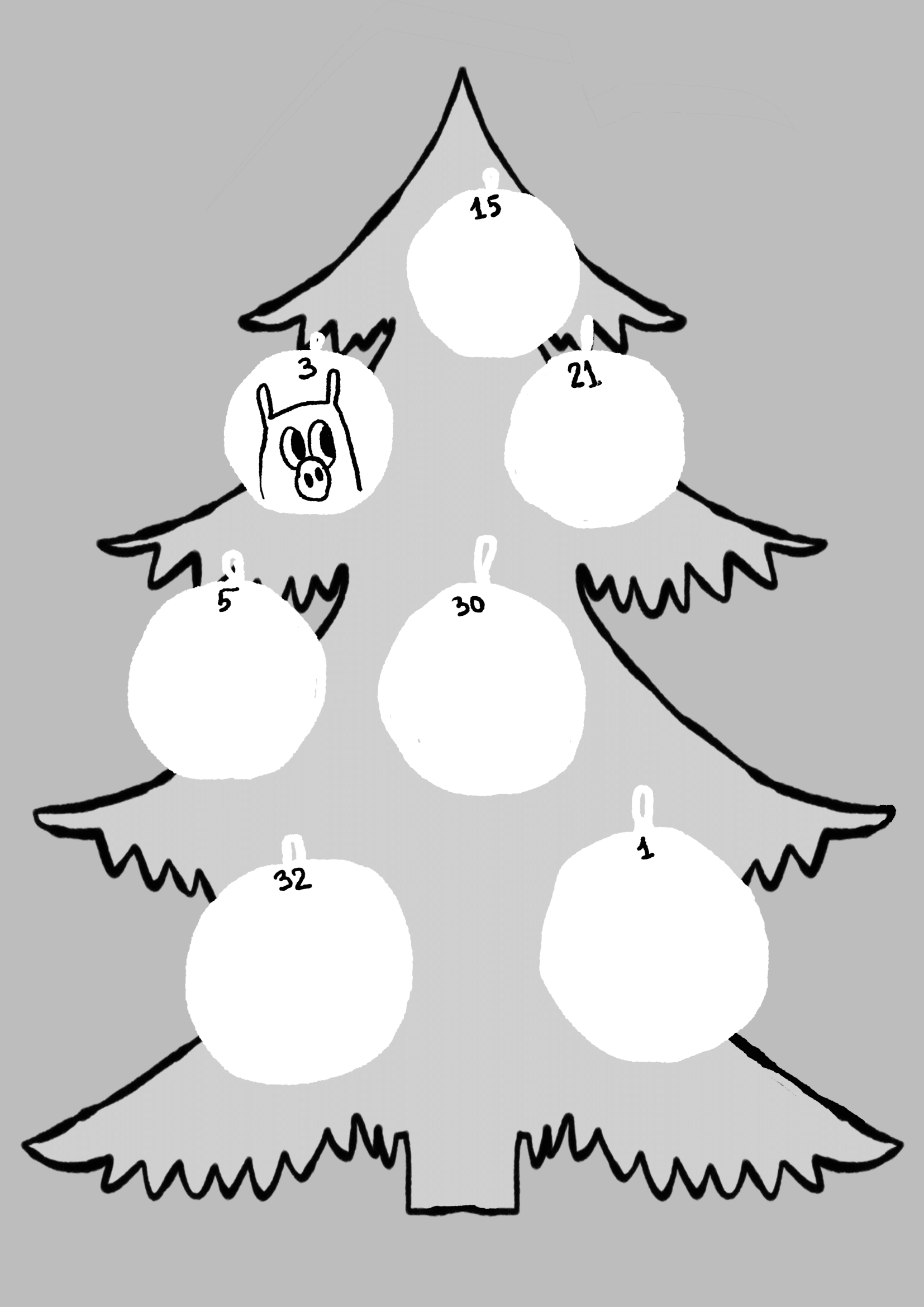 Ornaments show the page number. Draw the toys appear next to each page number in the book.